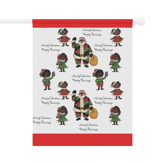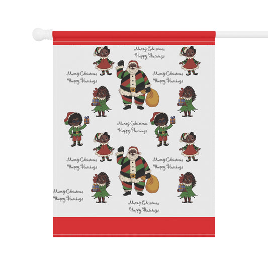 Black Santa & Elves Christmas Banner - Red border