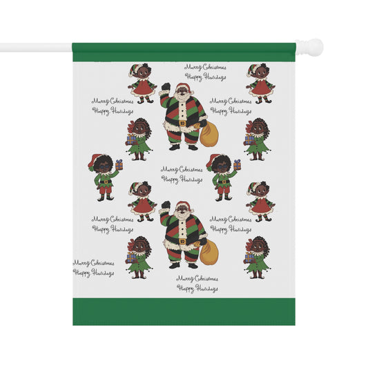 Black Santa & Elves Christmas Banner - Green border